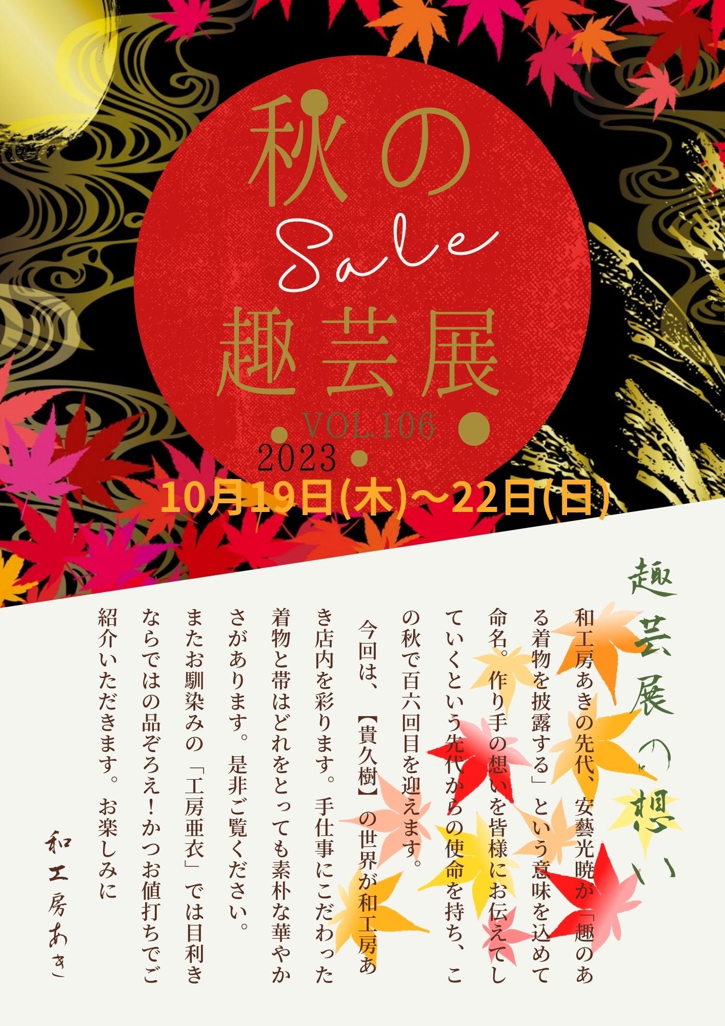 ◆秋の趣芸展◆vol105 開催日 10月19日(木)~22日(日)