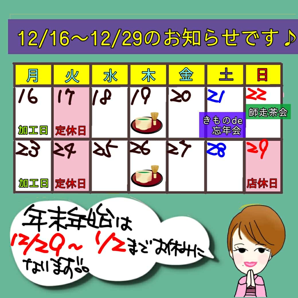 12/16(月)|12/29(日)のスケジュールお知らせです!