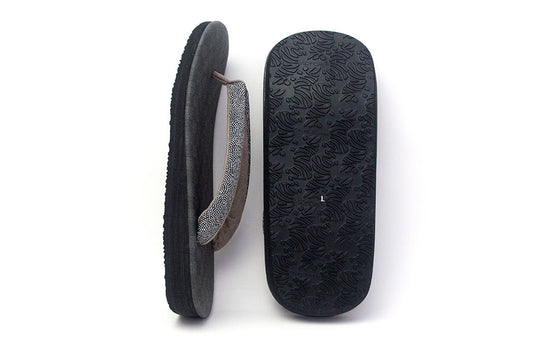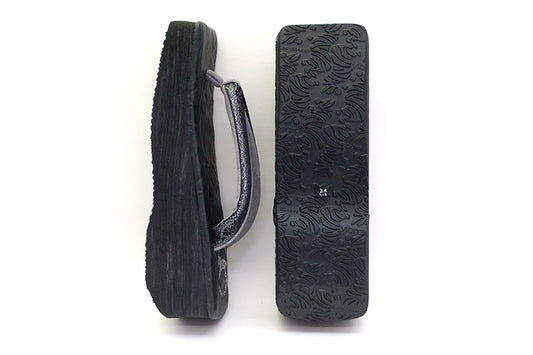 Calen Blosso カフェぞうり レディース 角型 <博多織/銀ラメ地×黒・M> No.20522