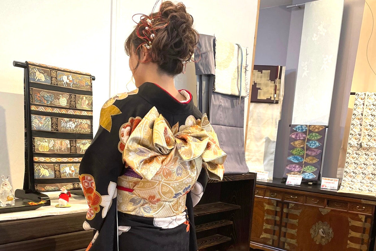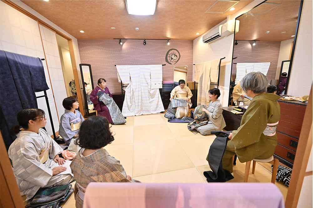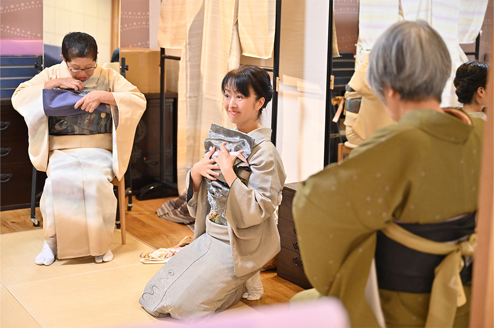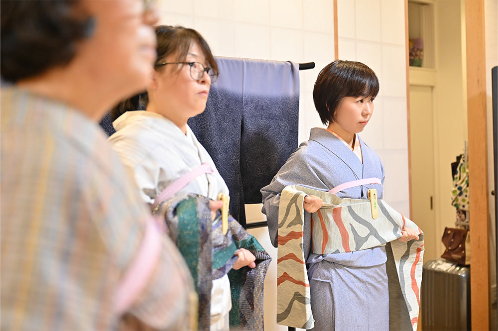和工房あきでは、帯を前で結ぶ着付け教室を、