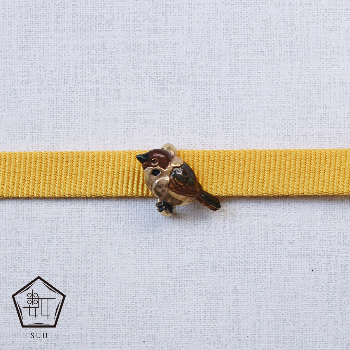 ふっくらとした一羽のスズメをモチーフにしたアイテム。