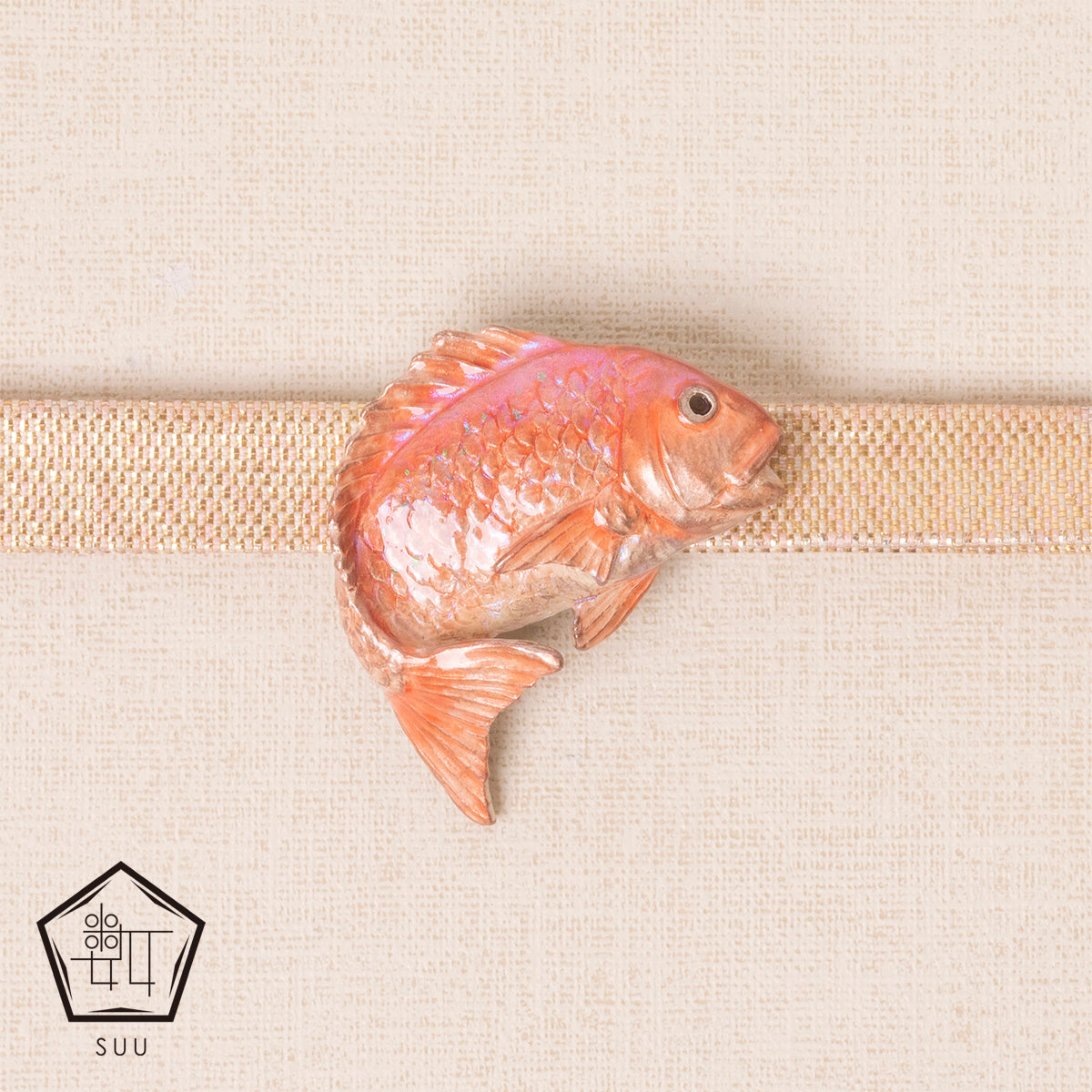 釣ったばかりの生き生きとした真鯛をそのまま帯留めにしました。
