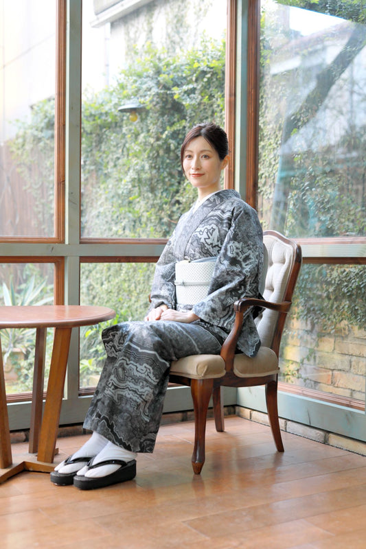 コレカラキモノ 綿麻きもの【地層】アイスグレー